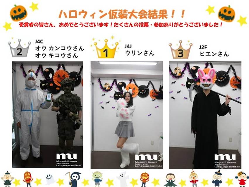 武蔵浦和日本語学院ではハロウィンパーティーとして、仮装をして記念撮影やお菓子すくいゲームを行いました!