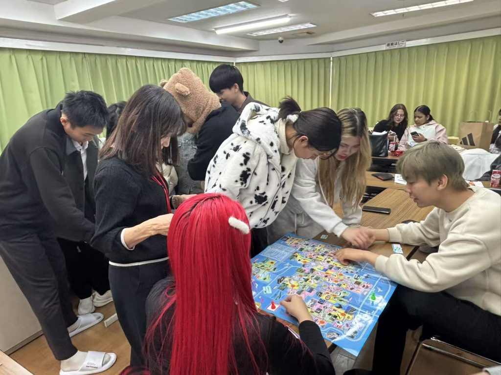 すごろくは、日本語で書かれた指示を読みながら進める内容で、難しさも感じられる場面がありましたが、学生たちは日本語でのやり取りを楽しみながら、意欲的にゲームに参加していました。